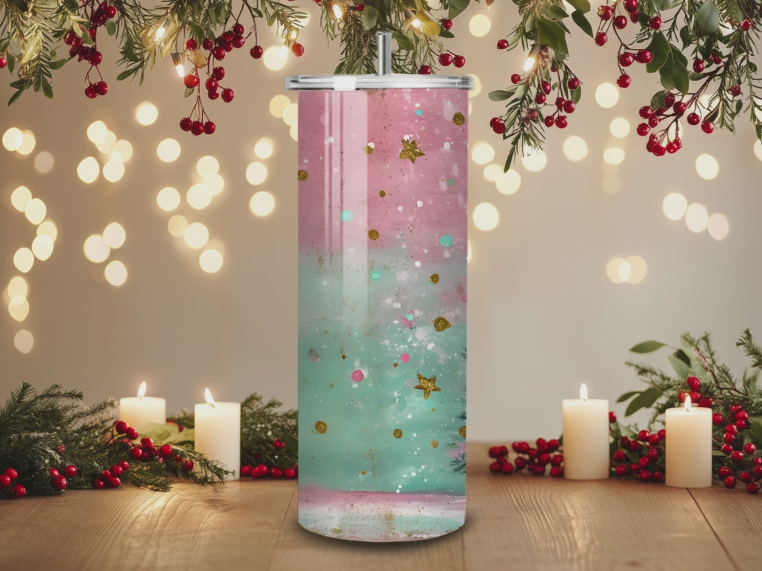 Sip in style with this charming tumbler featuring a beautiful pink background that captures a vintage aesthetic. The soft, nostalgic color palette brings warmth to your daily routine, whether you're enjoying your morning coffee or an afternoon beverage. Perfect for those who appreciate timeless design with a modern twist.